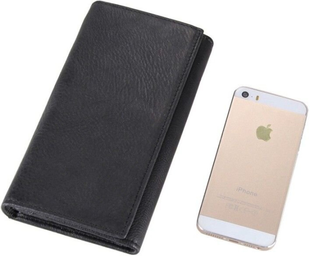 Великолепный кошелек черного цвета. Этот Аксессуар выполнен из натуральной кожи. Кошелек представлен в классическом стиле при этом его дизайн подчеркивает аристократичность обладателя данного кошелька. В кошельке много отделений для карточек и купюр. Кожа на ощупь мягкая, внутри карманы прошиты плотной тканью. Закрывается кошелек на магнитную кнопку. Упакован в текстильный пылезащитный чехол белого цвета.
