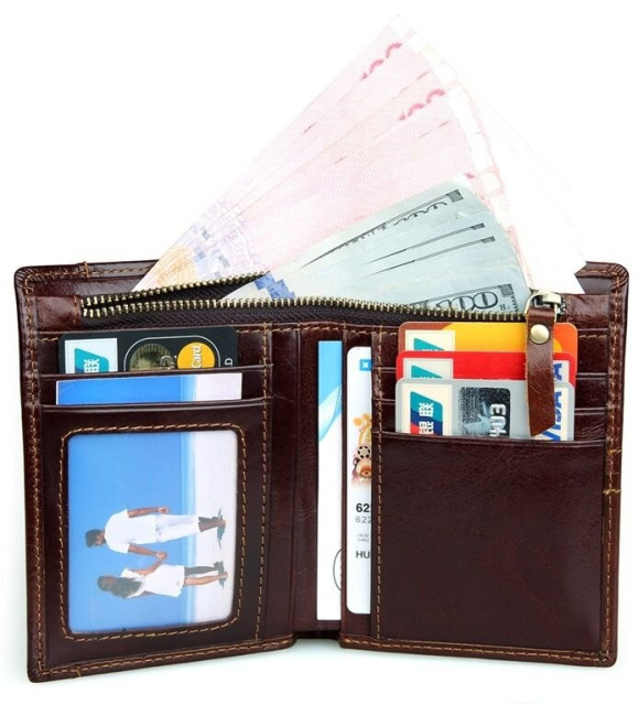 - 3 отделения для банкнот, одно из которых закрывается молнией;