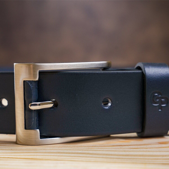Стильный брючный ремень - отличная находка для современного делового мужчины. В этом аксессуаре сочетаются прочная кожа хорошего качества, прямоугольная пряжка из прочного металла цвета серебра, а также благородный темно-синий оттенок. Этот ремень можно носить как каждый день, так и выбирать его для более торжественных случаев, ведь он выглядит действительно достойно и модно.