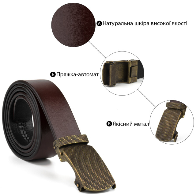 UA MarketКиївJANAТовари та послугиРемниМужские ремниРемень мужской с зернистой пряжкой автомат Vintage 20273 Коричневый