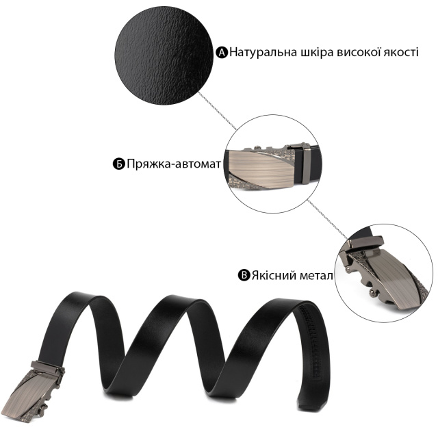 UA MarketКиївJANAТовари та послугиРемниМужские ремниРемень с автоматической пряжкой с узором Vintage 20251 Черный