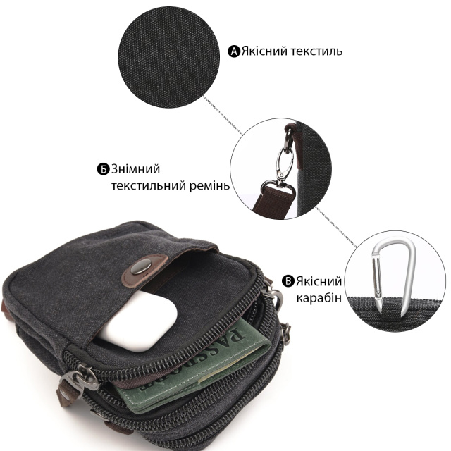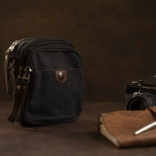 Барсетка текстильная на пояс Vintage 20082 Черная