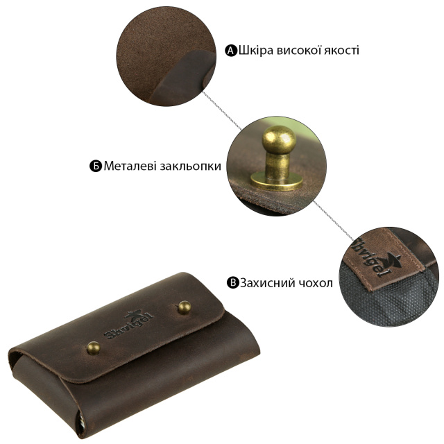 Прикольная визитница от украинского производителя "SHVIGEL", выполнена из натуральной винтажной кожи высокого качества. Аксессуар вмещает в среднем 35-40 визиток (в зависимости от толщины). Визитница упакована в фирменный, текстильный пылезащитный чехол. Отлично подойдет для подарка.