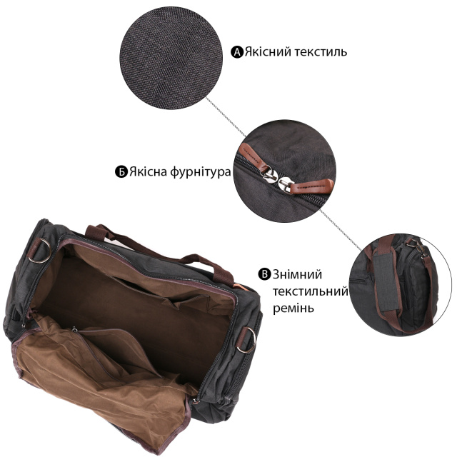 Практичная текстильная дорожная сумка. Модель также подойдет для занятий спортом. Отличием текстильной сумки является то, что она весит легче, чем кожаная. Сумка легко стирается и совсем не маркая. Модель имеет все необходимые карманы для вашего удобства. Вы также можете носить сумку на плече. Сумка станет идеальным помощником в любое путешествие.
