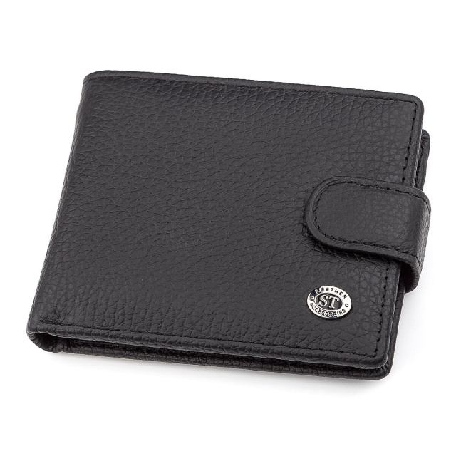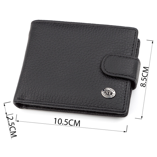 Данная модель отличный вариант для любителей переносить бумажник в заднем кармане брюк. Она отличается компактностью и функциональностью. Фиксация производится благодаря кнопке. Такое изделие поможет разместить самые нужные вещи: деньги, кредитки, ID-карты, и даже небольшое количество монет. Изготовлен кошелек из натуральной черной кожи. На лицевой стороне аксессуара изображен брендовый, новый знак и лаконичная строчка по кромке. Смотрится кошелек стильно и современно. Наш интернет-магазин позволяет приобрести аксессуар с возможностью оформления доставки по территории всей страны.