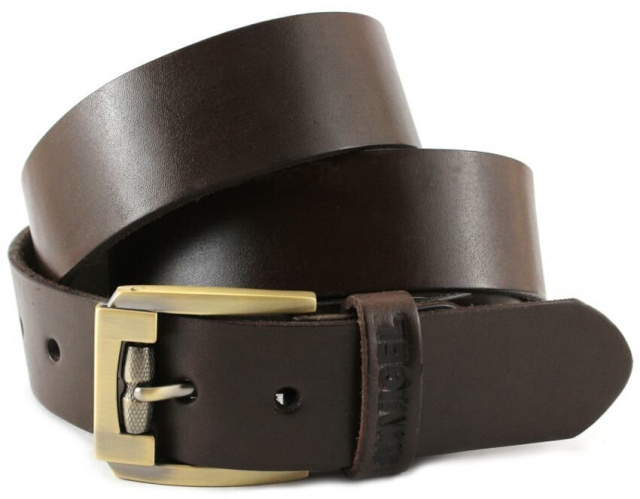 Стильный ремень из цельного полотна кожи. Имеет приятный коричневый цвет с легким блеском. Ремень оснащен красивой, добротной пряжкой желтого цвета. Ремень прекрасно подойдет под джинсы. Качество ремня потрясающее, оно не оставит равнодушнім любого мужчину. Такой ремень не стыдно подарить директору или солидному деловому мужчине.