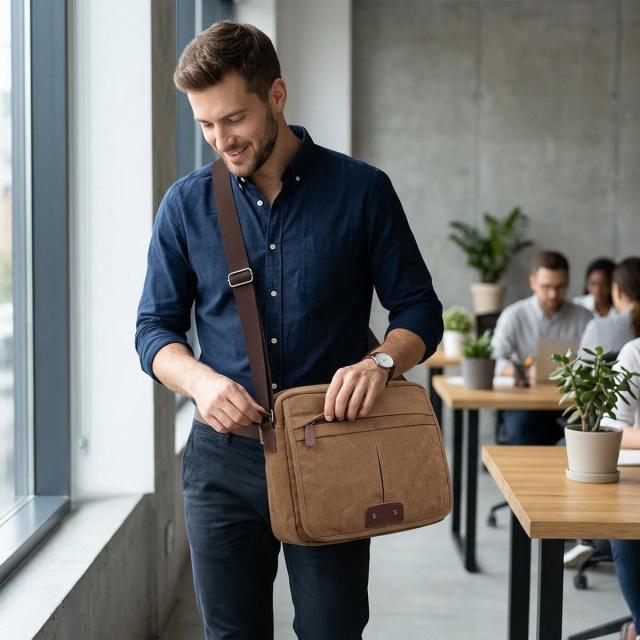 Текстильная сумка для ноутбука — практичный аксессуар для работы, города, документов и ежедневного использования. Модель сочетает в себе удобный горизонтальный формат, продуманную организацию пространства и стиль casual, поэтому хорошо подходит для тех, кому важно всегда иметь под рукой ноутбук, документы и личные вещи.