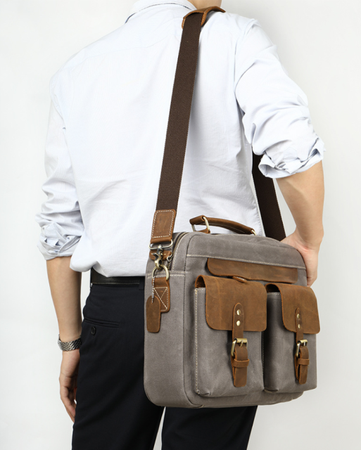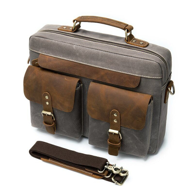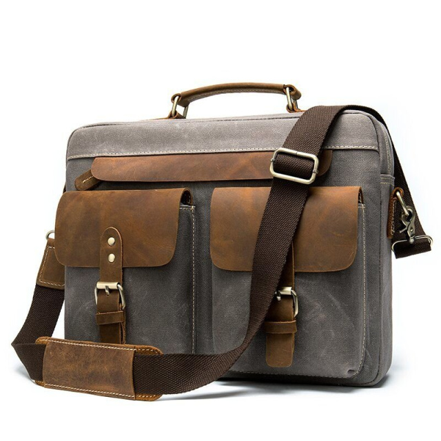 Сумка-портфель мужская текстильная с кожаными вставками Vintage 20001 Cерая
