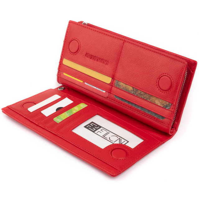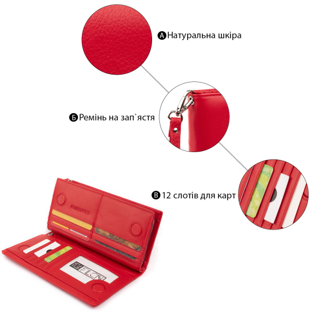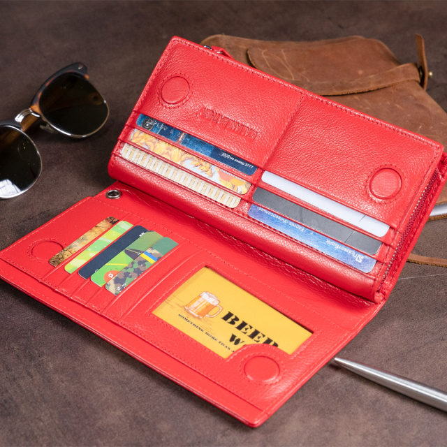 Яркий красный кошелек вертикального типа из натуральной кожи. Модель состоит из двух автономных частей: первая для кредиток, вторая для купюр и монет. Первая часть кошелька закрывается магнитами, а вторая - молнией. Изделие прослужит вам далеко не один год. Модель имеет изящную текстуру кожи. Очень мягкая и приятная на ощупь. Кошелек удобно носить на запястье или в дамской сумочке. Изделие будет идеальным подарком для любой девушки. В комплекте идет фирменная картонная коробка, а значит, вам не придется заморачиваться над упаковкой подарка.