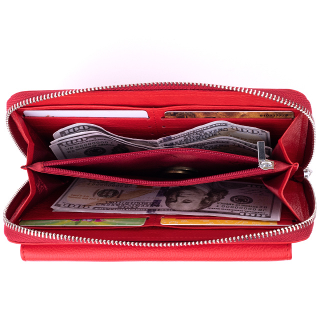 Внутри предусмотрены два отделения для купюр, карман на молнии между отделениями, два открытых кармана под стенками и 12 слотов для кредиток. Благодаря такой конструкции все необходимое удобно организовать и держать под рукой.