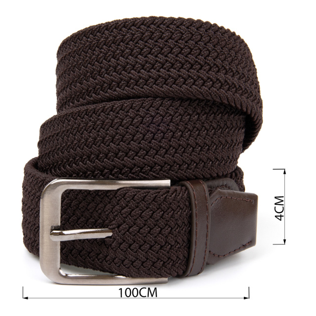 Текстильный пояс для мужчин и женщин шириной 4 см идеально подойдет под ваш стиль. Ремень коричневого цвета выглядит оригинально и в то же время в классическом стиле. Изделие тянется и не слоится. Особенностью данного ремешка является то, что вам не нужно делать дырки в полотне - они с легкостью делаются при помощи хлястика на пряжке. Узор текстильного полотна раздвигается и хлястик проходит насквозь. Несмотря на свою доступную стоимость аксессуар имеет высокое качество и прослужит вам далеко не один год. На нашем сайте изделие доступно в разных цветах.