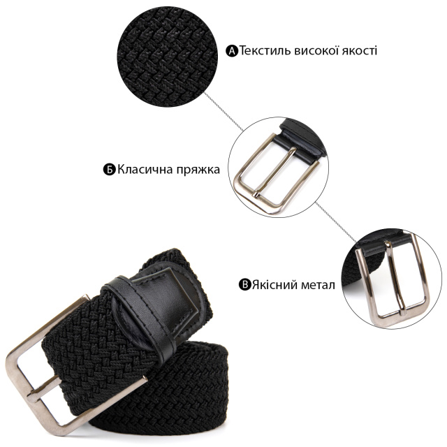 Текстильный пояс для мужчин шириной 4 см идеально подойдет под ваш стиль. Ремень в классическом стиле, черного цвета и из крепкого материала. Изделие тянется и не слоится. Особенностью данного ремешка является то, что вам не нужно делать дырки в полотне - они с легкостью делаются при помощи хлястика на пряжке. Узор текстильного полотна раздвигается и хлястик проходит насквозь. Несмотря на свою доступную стоимость аксессуар имеет высокое качество и прослужит вам далеко не один год. На нашем сайте изделие доступно в разных цветах.