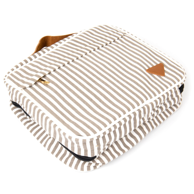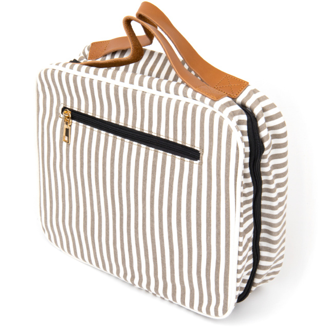 Сумка в дорогу органайзер для одежды или других личных вещей. Аксессуар очень легкий и удобный. Сумка закрывается на молнию. Изделие можно подвесить с помощью крючка. Модель имеет дизайн в серую полоску. Внутри плотная подкладка и множество кармашков. Сумка станет идеальным помощником в дорогу. Рекомендуем вам данную модель для легкой летней сумки. Сумка также идеально подойдет на пляж. Данная модель доступна на нашем сайте с разными полосками.