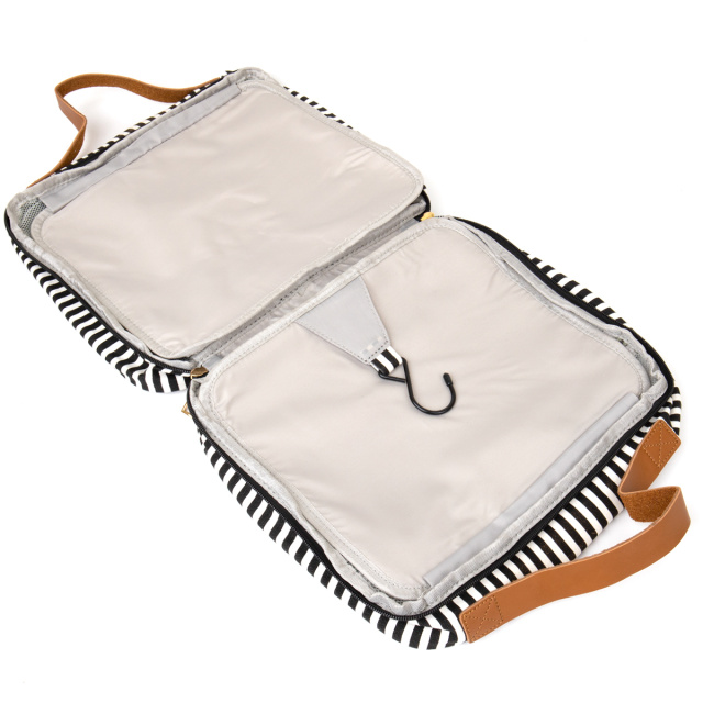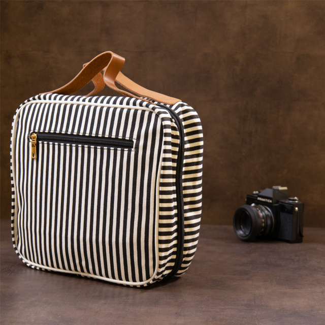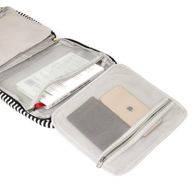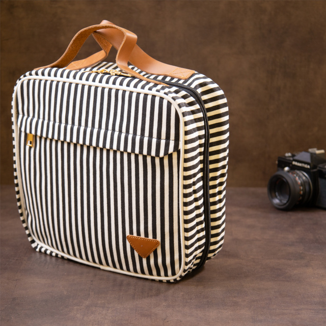 Сумка в дорогу органайзер для одежды или других личных вещей. Аксессуар очень легкий и удобный. Сумка закрывается на молнию. Изделие можно подвесить с помощью крючка. Модель имеет дизайн в черную полоску. Внутри плотная подкладка и множество кармашков. Сумка станет идеальным помощником в дорогу. Рекомендуем вам данную модель для легкой летней сумки. Сумка также идеально подойдет на пляж.