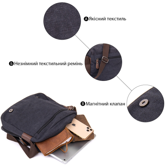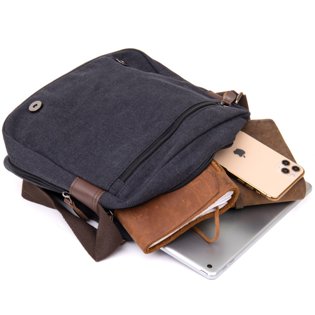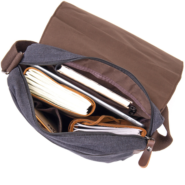 Небольшая сумка почтальонка в универсальном и практичном черном цвете. Аксессуар дополнен необходимым функционалом. Производство - фабричный Китай. Закрывается сумка на клапан с магнитными кнопками. Внутри - плотная подкладка из ткани коричневого цвета. Сумку удобно носить на плече. Текстильный ремешок не снимется. Сумка идеальный вариант на каждый день по бюджетной стоимости. На нашем сайте модель доступна в разных цветах.