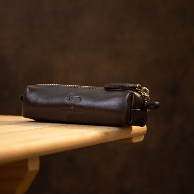 Материал: натуральная кожа. Цвет: коричневый. Размеры (ШхВхГ, см): 5х14х3,5 см. Страна производитель: Украина. Бренд: GRANDE PELLE. Описание: - закрывается на молнию; - внутри надежное металлическое кольцо-даржатель серебреного цвета; Красивая ключница из высококачественной натуральной кожи на молнии. Имеет стильный и представительный вид. Фурнитура цвета – серебро. Может стать отличным подарком, так как данный аксессуар просто незаменим в наше время. Ваши ключи будут под надежной защитой и не потеряются в сумке, как часто бывает.