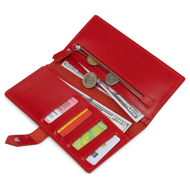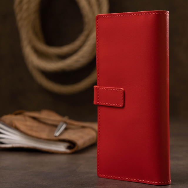 Красивое женское портмоне насыщенного красного цвета. Материал изготовления – натуральная износоустойчивая кожа высокого класса. Внутреннее наполнение представлено в виде четырех вместительных отделений для купюр, удобной монетницы на молнии и слотов для кредитных карт или визиток. Такое портмоне станет отличным подарком любимой женщине.