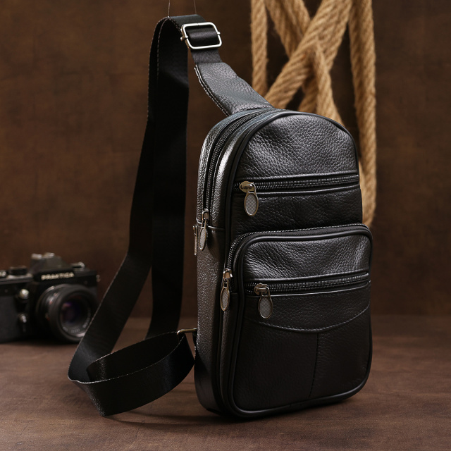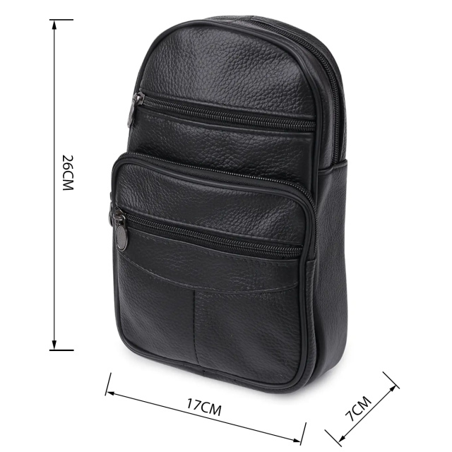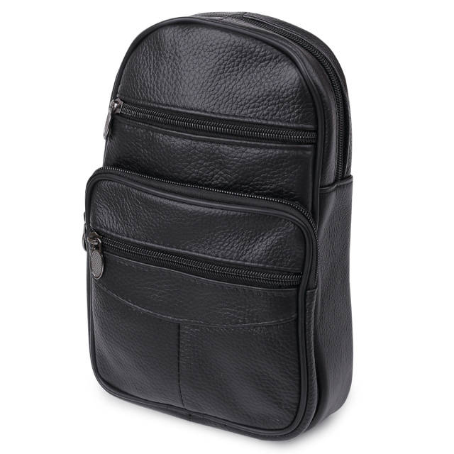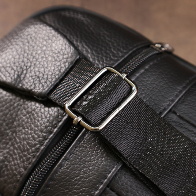 Компактная, но очень вместительная мужская сумка через плечо из натуральной кожи высокого класса с зернистой фактурой. Внутри одно просторное отделение на молнии. На внешней стороне три кармана на молнии. Также есть один карман на тыльной стороне. Ремень изготовлен из прочного текстиля и может регулироваться по длине.