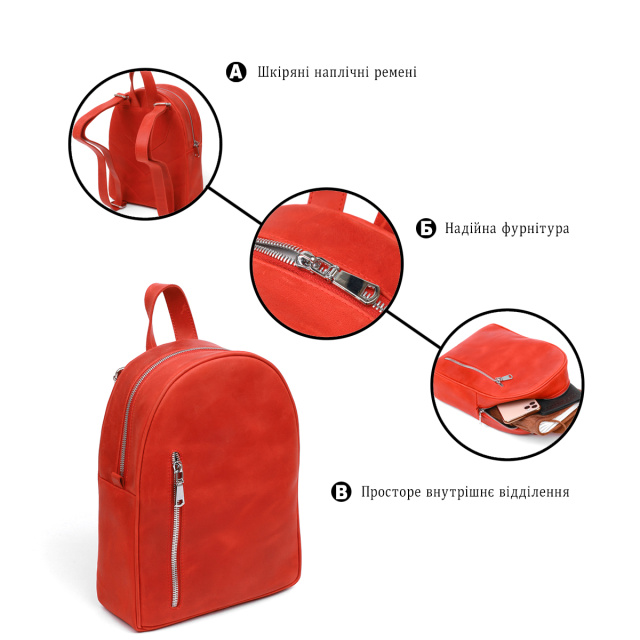 Превосходный рюкзак в городском стиле от украинского производителя. Имеет простой, но стильный дизайн, а также хорошо функциональное наполнение. Цвет изделия – насыщенный красный, фактура – матовая гладкая и очень приятная на ощупь. Выполнена данная модель из натуральной высокопрочной кожи с отличными характеристиками. Такой рюкзак станет незабываемым подарком на любой праздник.