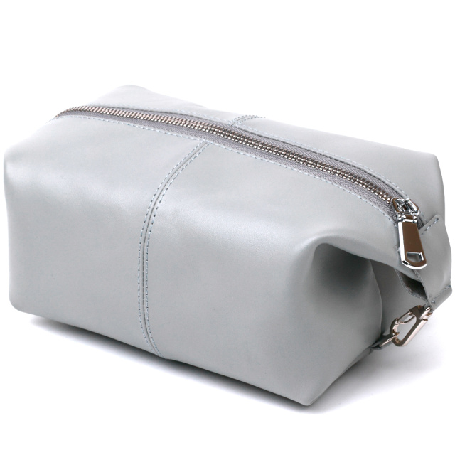 Добротная косметичка в практичном и строгом дизайне от украинского производителя. Выполнена данная модель из натуральной кожи высокого качества и улучшенной прочности. Аксессуар имеет модный и современный серый цвет и гладкую фактуру. Объем может быть увеличен с помощью карабинов, которые расположены по бокам изделия.