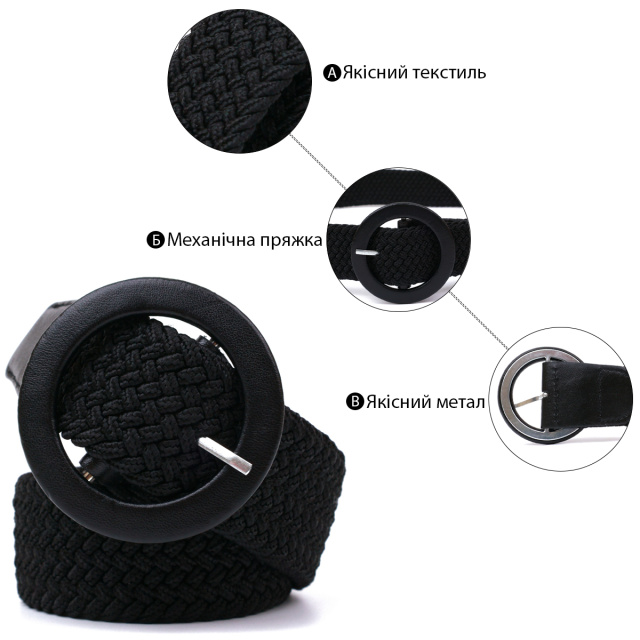 Красивый женский текстильный ремешок необычной фактуры. Пояс имеет стильную круглую пряжку черного цвета. Ремень подойдет как под классические брюки, так и под джинсы. Изделие тянется и не слоится. Особенностью данного ремешка является то, что вам не нужно делать дырки в полотне - они с легкостью делаются при помощи хлястика на пряжке. Узор текстильного полотна раздвигается и хлястик проходит насквозь. Несмотря на свою доступную стоимость аксессуар имеет высокое качество и прослужит вам далеко не один год. На нашем сайте изделие доступной в разных цветах.