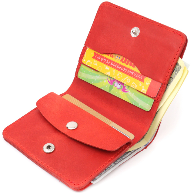 Красивое и стильное матовое портмоне в современном дизайне и красивом красном цвете. Изделие выполнено из натуральной кожи высокого качества и отличной устойчивости к износу. Портмоне имеет вместительное отделение для купюр, слоты для пластиковых карточек и монетницу. Закрывается аксессуар на кнопку. Данный аксессуар прекрасно подойдет в качестве подарка и принесет любой женщине исключительную радость.
