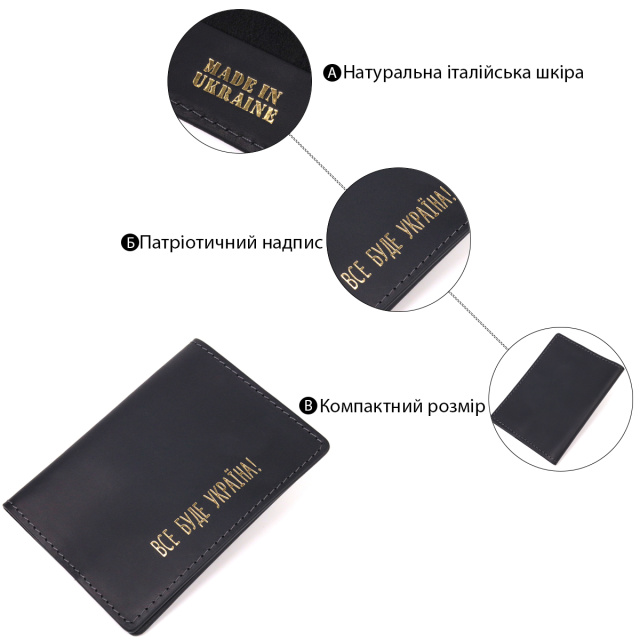 Практичная обложка на паспорт из качественной итальянской кожи, с патриотической надписью “Все буде Україна”. Особенностью кожаной обложки есть то, что она надежно защищает документ от повреждений и имеет долгий срок службы. Изделие без застежки, упаковано в фирменный чехол из фетра. Кожаная обложка на паспорт подойдет как мужчинам, так и женщинам, а еще будет отличный подарком на любой праздник.