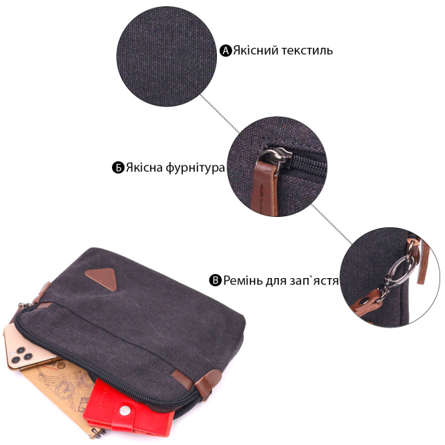 Удобная мужская барсетка текстильная 21258 Vintage Черная