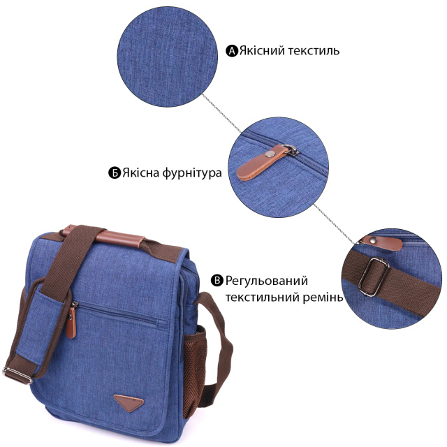 UA MarketКиївJANAВсе товарыТовари та послугиСумки мужскиеМужские сумкиКожаные мужские сумкиИнтересная мужская сумка через плечо из текстиля 21264 Vintage Синяя