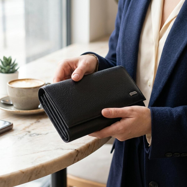 Женский кожаный кошелек — практичный и вместительный аксессуар для повседневного использования. Модель сочетает в себе аккуратный внешний вид, удобный формат и продуманную внутреннюю организацию, поэтому хорошо подходит для хранения купюр, карточек, монет и других важных мелочей.