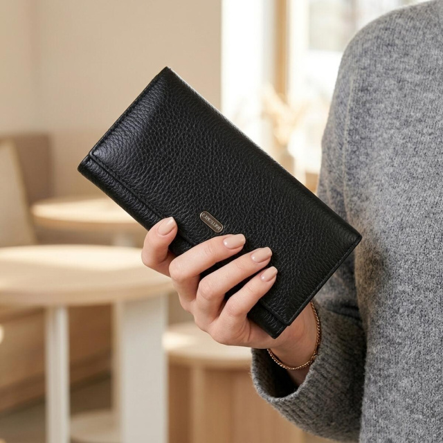 Женский кожаный кошелек — практичный и вместительный аксессуар для повседневного использования. Модель сочетает в себе аккуратный внешний вид, удобный формат и продуманную внутреннюю организацию, поэтому хорошо подходит для хранения купюр, карточек, монет и других важных мелочей.