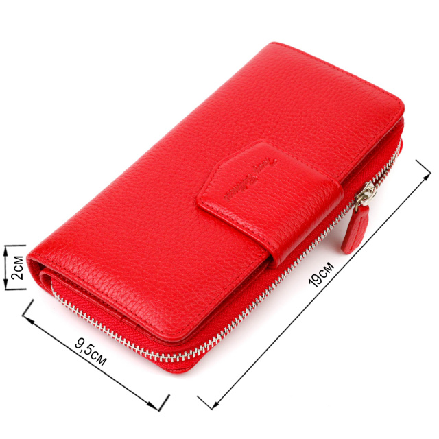 Яркий женский кошелек из натуральной кожи флотар, для которой характерна прочность, износостойкость и зернистая фактура. Аксессуар состоит из одного вместительного основного отделения с карманом-перегородкой на молнии, монетницы, тринадцати ячеек для пластиковых карт, двух прилегающих карманов и трех отделений под сеточкой для документов. В изделии использована качественная фурнитура серебристого цвета. Закрывается кошелек на молнию - основное отделение, и на хлястик с кнопкой - блок для карт. Покупая кожаный кошелек себе или на подарок все хотят получить качественную и стильную вещь, именно такие изделия представлены в нашем магазине, а наши опытные менеджеры помогут определится с выбором.