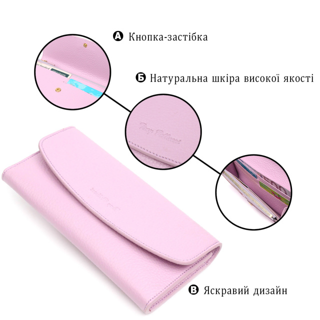 Ультрамодный женский кошелек из натуральной кожи флотар, для которой характерна прочность, износостойкость и зернистая фактура. Аксессуар состоит из одного широкого отделения для купюр, двенадцати ячеек для пластиковых карт, одного прилегающего кармана и монетницы на молнии. В изделии использована качественная фурнитура золотистого цвета. Закрывается кошелек клапаном на кнопку. Покупая этот кожаный кошелек, Вы не только получаете стильную вещь, но и получаете качественный аксессуар, который прослужит не один год.