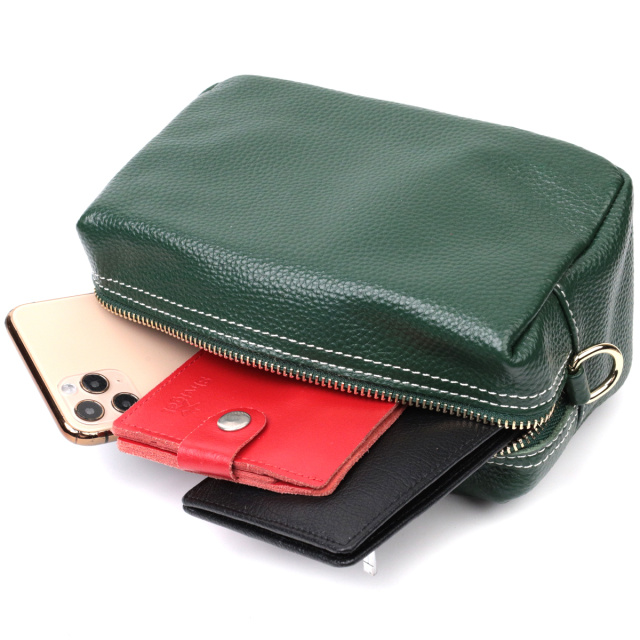 Модная сумка-клатч с двумя кожаными ремешками из качественной натуральной кожи, которая долго носится и не теряет свой первоначальный вид. Аксессуар состоит из одного основного отделения. Носить сумку можно в руке, на запястье, на плече и через плечо, для этого имеется кожаный съемный плечевой ремень, а также съемный кожаный кистевой ремень. В изделии использована качественная фурнитура цвета желтого золота. Универсальный вариант сумки как на вечер так и в качестве сумочки на каждый день.