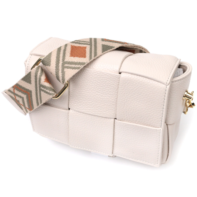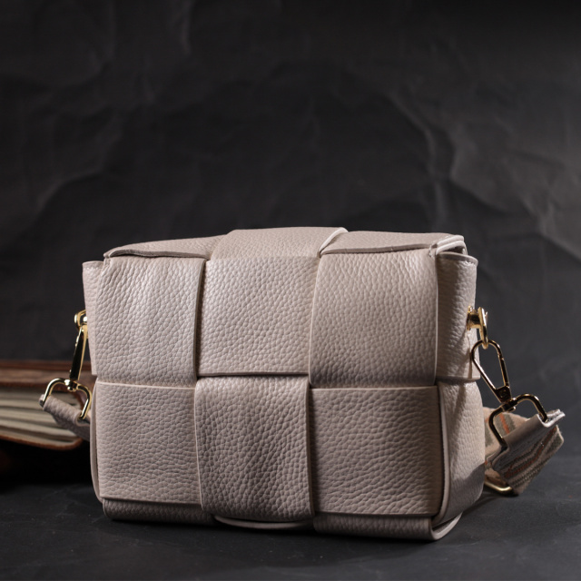 Интересная женская сумка с переплетом и карманом-косметичкой внутри. Изделие пошито из качественной натуральной мягкой кожи, которая долго носится и не теряет свой первоначальный вид. Аксессуар состоит из одного отделения в котором пристегивается карман косметичка на молнии. Носить сумку можно под рукой, на плече и через плечо, для этого имеется текстильный съемный ремень. В изделии использована качественная фурнитура цвета желтого золота. Универсальный вариант сумки как на вечер так и в качестве сумочки на каждый день.