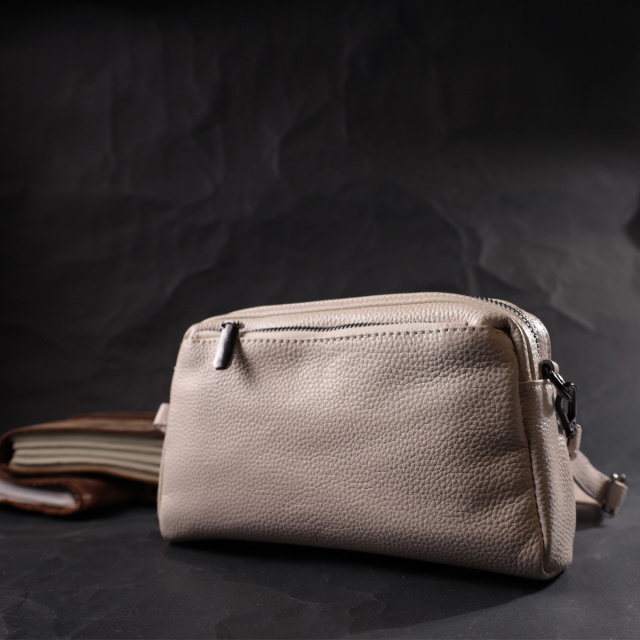 Стильная и удобная женская сумка, на каждый день. Изделие пошито из качественной кожи, которая отлично носится и не теряет свой первоначальный вид. Аксессуар состоит из одного основного отделения, потайного кармана на молнии, кармана открытого типа, двух наружных карманов, что закрываются на молнии. Носить сумку можно в руках, на плече и через плечо, для этого имеется кожаный съемный ремень. В изделии использована качественная фурнитура цвета темного серебра. Универсальный вариант сумки как на вечер так и в качестве сумочки на каждый день.