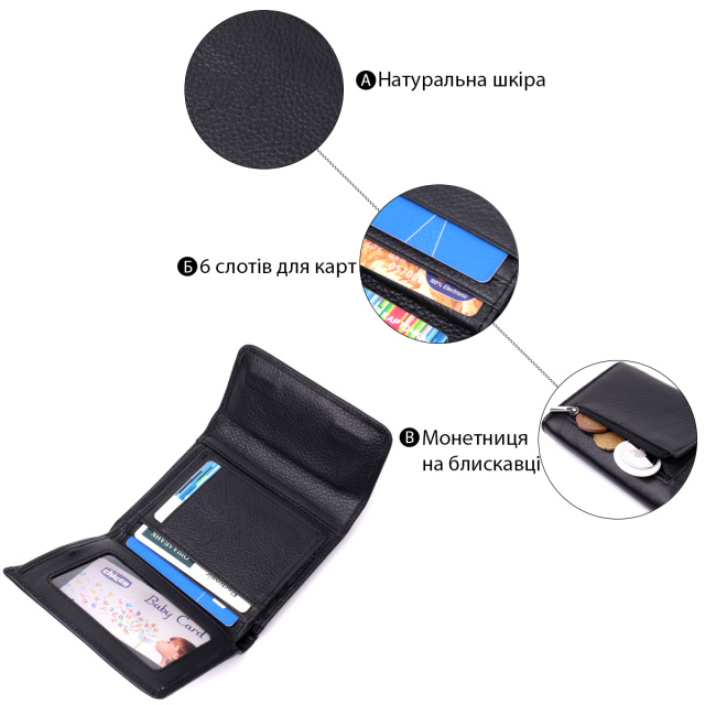 Практичный кошелек среднего размера из натуральной кожи высочайшего качества. Аксессуар состоит из одного вместительного отделения для купюр, кармана на молнии через всю длину, шести ячеек для карт, четырех скрытых карманов, кармашка под пленкой и наружного кармана на молнии, что отлично прослужит для монет. Снаружи изделие прошито ровной строчкой по краю и украшено металлическим логотипом компании производителя, который размещен на клапане по середине. Портмоне дополнено надежной фурнитурой и крепкой подкладкой. Укомплектован кошелек в фирменную картонную коробку белого цвета. Изделие станет идеальным подарком для девушки любого возраста.