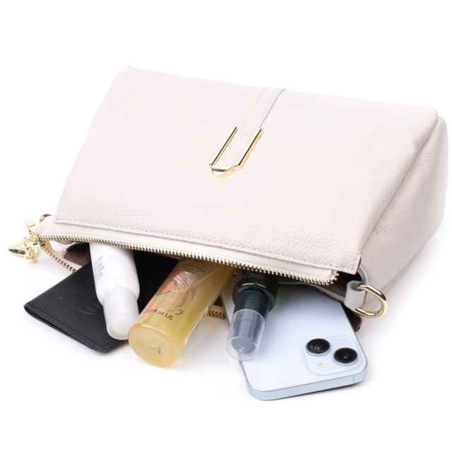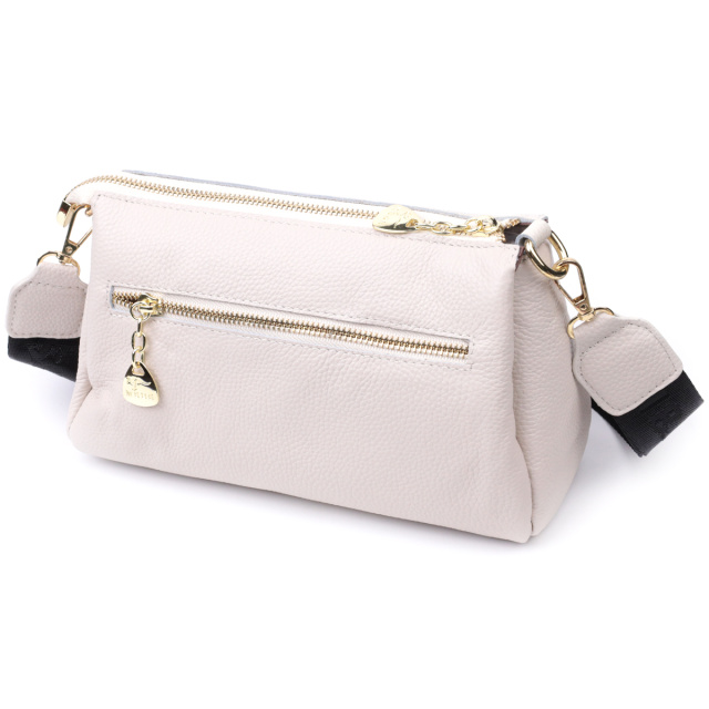 Удобная женская сумка на все случаи жизни из натуральной качественной кожи. Аксессуар состоит из основного отделения, которое закрывается на молнию, кармана на молнии и трех карманов открытого типа внутри, а также кармана на молнии снаружи на тыльной стороне. Носить сумку можно в руке, под рукой, на плече и через плечо, для этого имеется три ремешка разной длины, два кожаных и один текстильный. В аксессуаре использована качественная фурнитура цвета желтого золота.