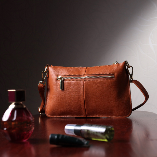 Стильная женская функциональная сумка-клатч из натуральной кожи. Аксессуар состоит из основного отделения, что закрывается на молнию, кармана-перегородки на молнии внутри и кармана на молнии на тыльной стороне, снаружи. Носить сумку можно на плече и через плечо, также можно носить как клатч под рукой и на кисти, для этого имеется длинный съемный ремешок, а также съемный кистевой ремень.