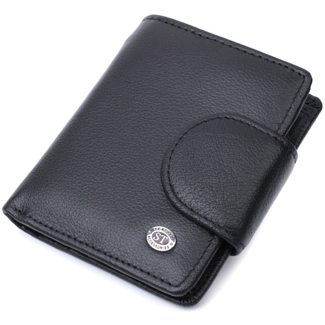 Практичный кошелек для женщин с карманом для монет из натуральной кожи ST Leather 22725 Черный