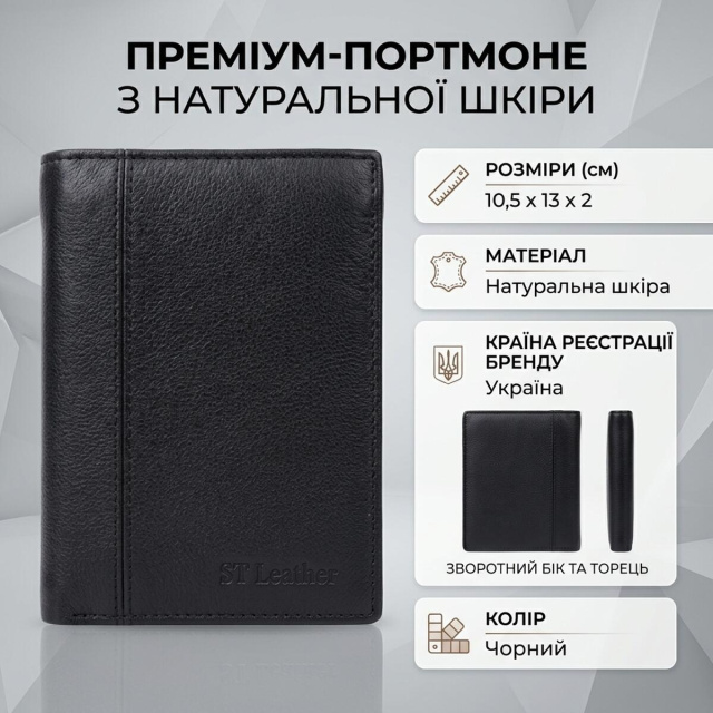 Чоловіче шкіряне портмоне для карток купюр та монет ST Leather 22733 Чорне