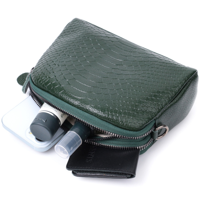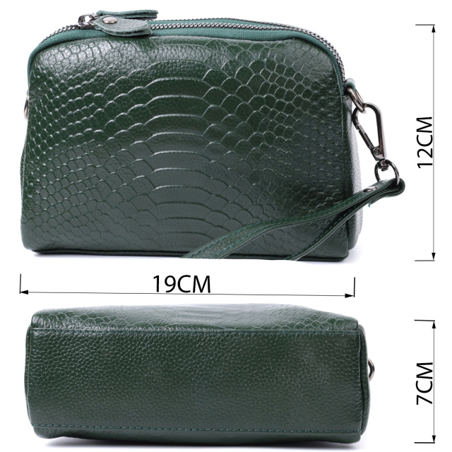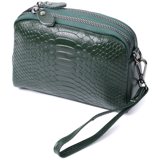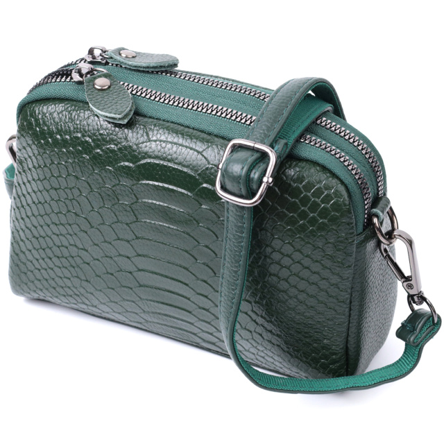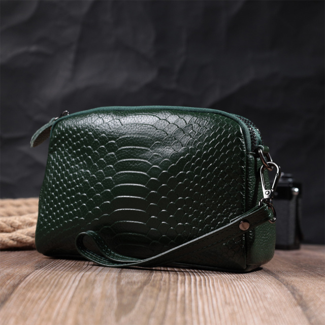 Красивая женская сумка из натуральной мягкой кожи высокого качества с тиснением под змею. Изделие очень удобное, можно носить на плече и через плечо, на кисти и просто под рукой как клатч. Модель дополнена фурнитурой цвета темного серебра. Аксессуар имеет два основных отделения в которых два кармашки - один на молнии и один открытого типа, а также карман на молнии снаружи, на тыльной стороне. Идеальный вариант для любой девушки которая ценит качество и имеет превосходный вкус.