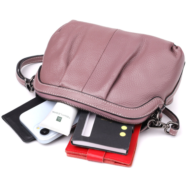 Пурпурная кожаная сумка с драпировкой — это аксессуар с характером: изысканный, заметный и в то же время практичный. Идеально подойдёт как для будней, так и для особых случаев, когда хочется выглядеть особенно эффектно.
