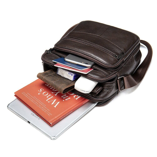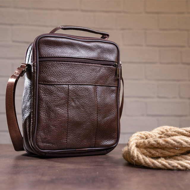 Удобная мужская сумка среднего размера отлично подойдет на каждый день. Аксессуар имеет два отделения, что делает модель еще более популярной среди наших клиентов. Сумка выполнена из натуральной кожи высочайшего качества и проносится далеко не один год. Изделие идеально выделит вас из толпы. Сумка будет прекрасным подарком для близкого человека.