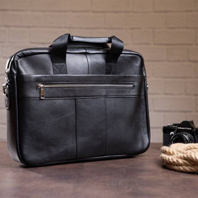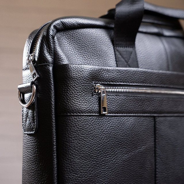 Деловая сумка для работы или поездок. Подойдет для ежедневного использования людям, которые любят носить с собой ноутбук или документы. С такой сумкой вы будете выглядеть очень солидно и со вкусом, а ваш образ будет более завершенным. Аксессуар прошит ровной черной строчкой и дополнен качественной фурнитурой в дизайн изделия. Модель обладает всем необходимым функционалом необходимым для вашего комфорта. Вы также можете носить сумку в руках с помощью крепких текстильных ручек с кожаными вставками. Если вы не знаете что подарить близкому человеку – подарите ему сумку из натуральной кожи. На нашем сайте вы сможете найти все необходимые аксессуары по доступным ценам с высоким качеством.