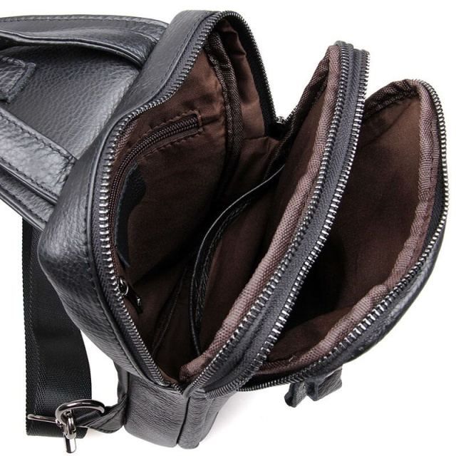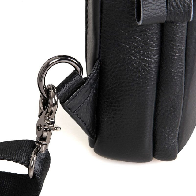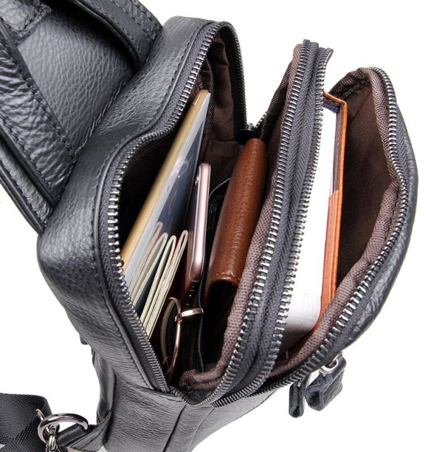 Многофункциональная сумка, которая может использоваться как мужчинами, так и женщинами. Аксессуар выполнен из натуральной высококачественной кожи приятной на ощупь. Цвет фурнитуры: темное серебро. На лицевой стороне находится сразу 3 кармана: 2 на молниях и один на магнитной кнопке. На задней внешней стороне находится отделение на молнии.
