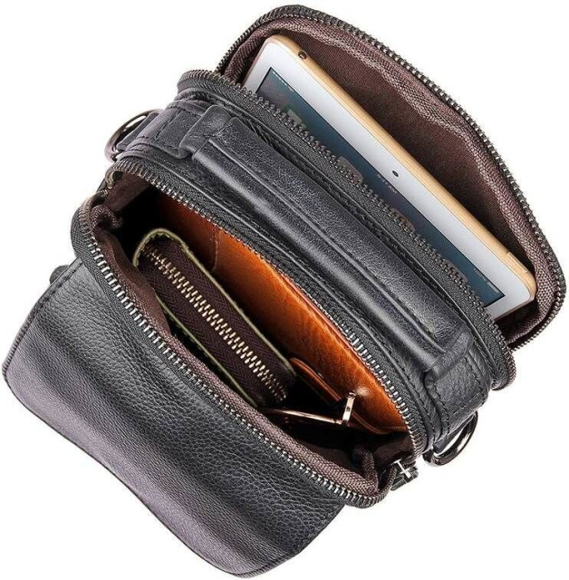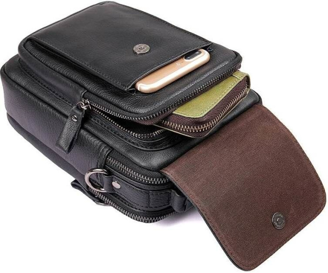 Оригинальная мужская сумка из натуральной фактурной кожи. Аксессуар имеет небольшие размеры, при этом помещает все необходимое для мужчины на каждый день. Изделие упаковано в белый пылезащитный мешок.