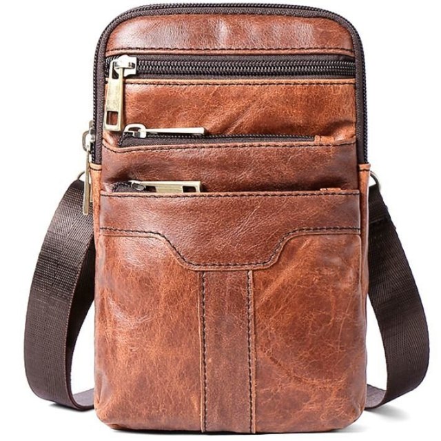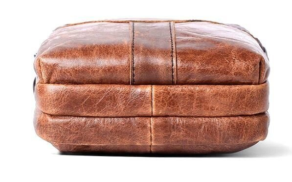 Оригинальная сумка для мужчин небольшого размера. Хороший вариант для тех, кто ищет маленькую сумку для самого необходимого. Вы можете носить такую сумку каждый день. По краям аксессуар прошит коричневой нитью. Внутри сумки крепкая текстильная подкладка коричневого цвета. Вы будете приятно удивлены, тем как сумка долго будет носиться. Может быть прекрасным вариантом для подарка любому мужчине.