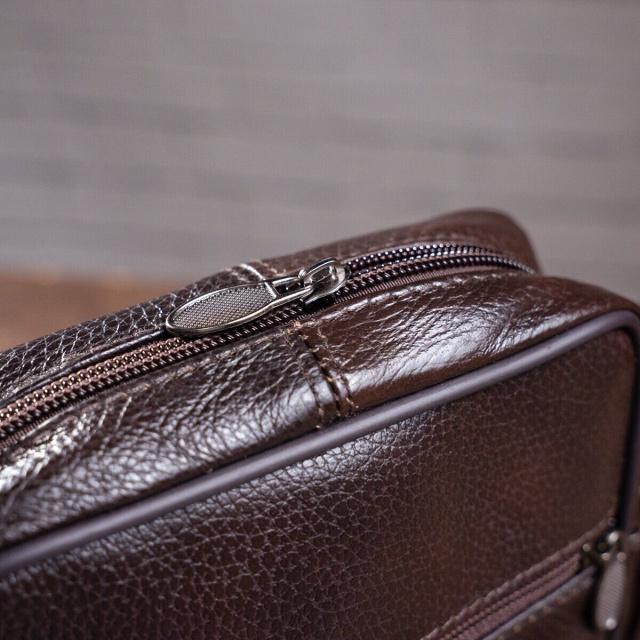 Стильная мужская сумка из натуральной кожи. Аксессуар совсем не прихотлив в уходе и пользуется особой популярностью у мужчин. Внутри сумки плотная текстильная подкладка. По краям аксессуар прошит ровной строчкой. Сумка станет прекрасным подарком для любого мужчины.