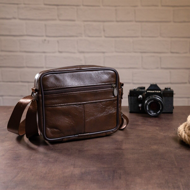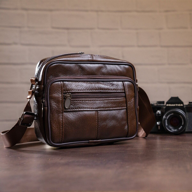 Оригинальная мужская сумка горизонтального типа. Сумка имеет весь необходимый функционал для вашего комфорта. Аксессуар не имеет больших размеров, но при этом достаточно вместительный. Сумка дополнена качественной фурнитурой. Внутри плотная текстильная подкладка. Изделие будет прекрасным подарком для близкого человека.